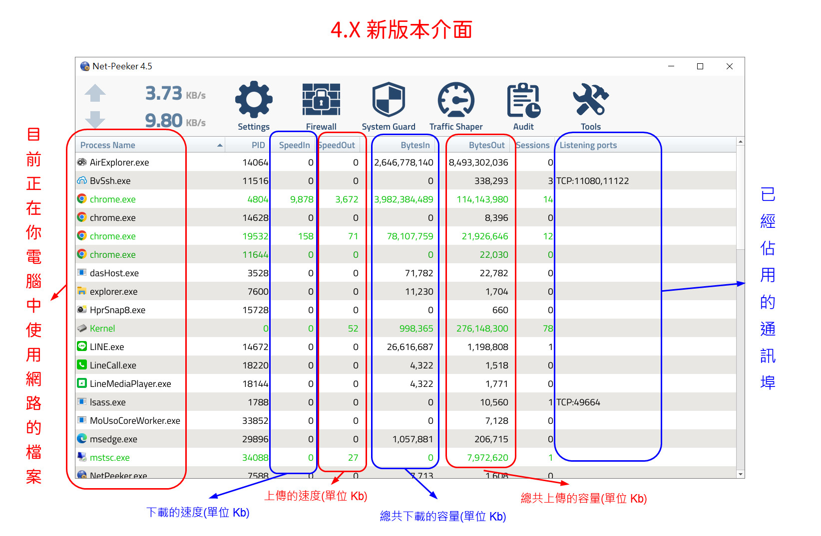 因為它是擁有圖形界面,所以有哪一些檔案(當然也包含惡意木馬)在使用你的網路進行資料的上傳或下載,都能一目了然