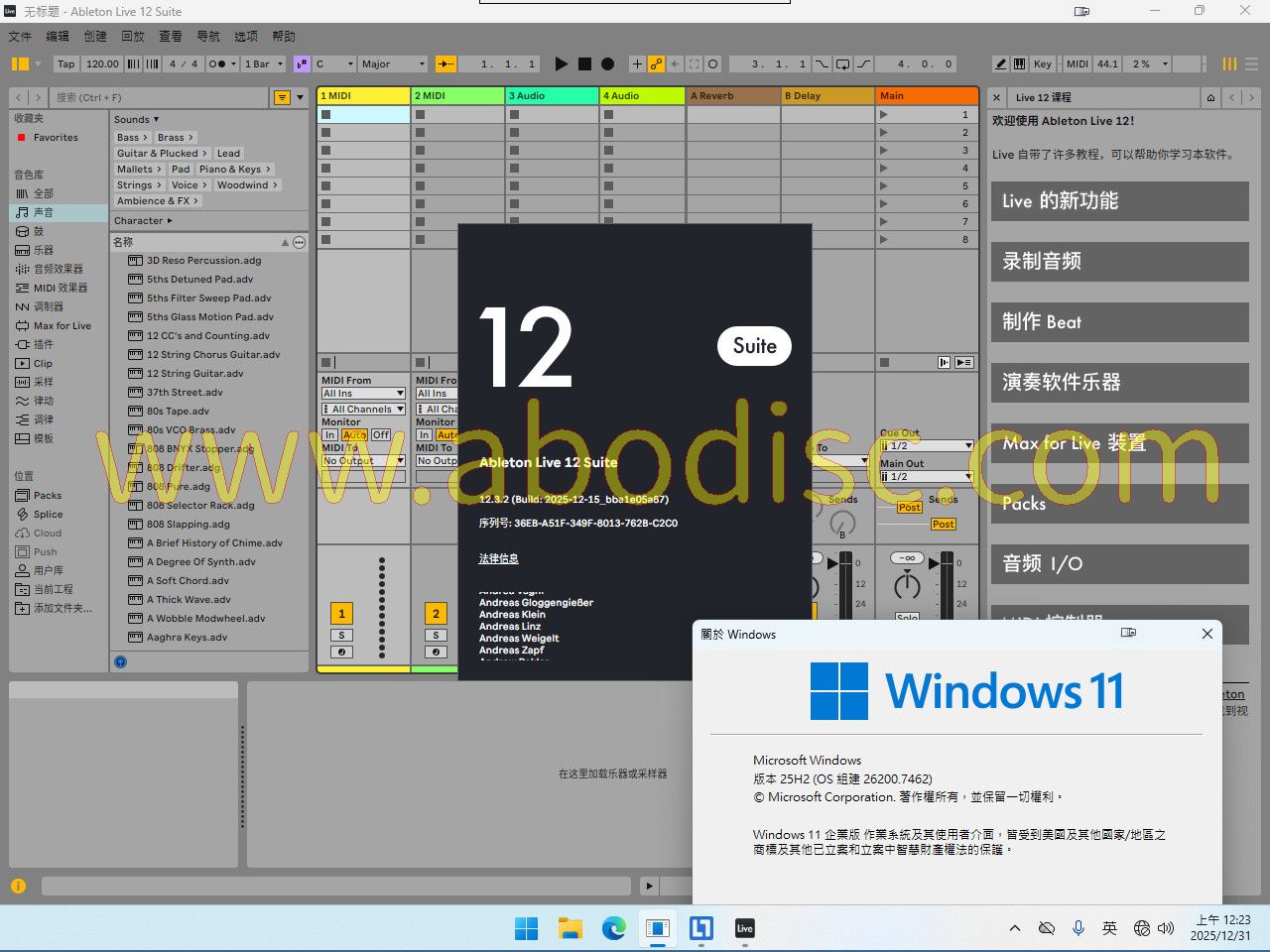 -=-=-=-=-=-=-=-=-=-=-=-=-=-=-=-=-=-=-=-=-=-=-=-=-=-=-=-=-=-=-=-=-=-=-=-= HoneRiSO Rip -=-=-=-=-=-=-=-=-=-=-=-=-=-=-=-=-=-=-=-=-=-=-=-=-=-=-=-=-=-=-=-=-=-=-=-= 軟體名稱: Ableton Live Suite 12.3.2 語系版本: 英文/簡體中文版 光碟片數: 單片裝(單面雙層 DVD) 保護種類: 檔案破解、授權檔 破解說明: 見最底下 系統支援: 適用 64 位元版的 Windows 10/11 硬體需求: PC 軟體類型: 個人音樂工作站 更新日期: 2025.12.21 軟體發行: Ableton(O.D) 官方網站: https://www.ableton.com/en/live 中文網站: 無 軟體簡介: (以官方網站為準) -=-=-=-=-=-=-=-=-=-=-=-=-=-=-=-=-=-=-=-=-=-=-=-=-=-=-=-=-=-=-=-=-=-=-=-= Ableton Live Suite 12 當代電子音樂與現場演出的終極製作神器 Ableton Live 12 Suite 是目前全球(當然也包含台灣音樂圈)最受推崇、市佔率 極高的數位音訊工作站 (DAW)之一。不論你是臥室製作人、職業編曲家,還是活 躍於夜店與祭典的 DJ,Live 12 都能提供一個極度靈活且直覺的創作環境。 相較於傳統邏輯較為線性、像是錄音帶錄製般的軟體,Ableton Live 最著名的核 心靈魂就是它的「Session View(Session 視圖)」。這讓創作者可以用「堆疊方 塊(Clips)」的方式即時觸發音效、循環節奏(Loops)與旋律片段。這種非線性 的邏輯非常適合在還沒有固定想法時進行「玩樂式」的實驗,也是為什麼它在電子 音樂、嘻哈(Hip-hop)以及現代流行音樂製作中幾乎是標準配備的原因。 Ableton Live 12 Suite 的關鍵升級與特色: 智慧 MIDI 生成與編輯工具 在第 12 代中,Ableton 加入了革命性的 MIDI 變換 (Transformations)與產生 (Generative)工具。這對於創作「卡關」或缺乏靈感的製作人來說簡直是救星。 系統可以根據你設定的參數,自動生成複雜的旋律、琶音或切分音節奏,甚至能針 對特定「調性(Scale)」進行全域限制,確保你隨手彈出的音符永遠不會走調。 全新的合成器與效果器 Suite 版本搭載了全新的合成器 Meld ,這是一個專為「雙振盪器」聲音設計的強 大工具,非常擅長創造具有機感、深邃且具實驗性的音色。此外,新的飽和效果器 Roar 則能為你的聲音增添從「溫暖的類比飽和」到「狂暴的工業破音」等各種質 地,是塑造現代聲音設計(Sound Design)的必備良藥。 更直覺的瀏覽與搜尋系統 Live 12 重新設計了瀏覽器,加入了「標籤(Tagging)」 功能與「聲音相似度搜 尋(Sound Similarity Search)」。當你聽到一個喜歡的鼓組大鼓(Kick) 音色 ,系統可以自動幫你在龐大的取樣庫中找出聽感相似的替代方案,大幅節省了在數 萬個檔案中挑選音色的時間。 Max for Live 的無限擴充性 身為最頂級的 Suite 版本,最大的價值就在於內建了 Max for Live。這是一個開 放的開發環境,讓全球的開發者可以製作出各種奇形怪狀的外掛工具、視覺效果或 是控制介面。這意味著你的軟體功能是可以無限擴張的,永遠都有新的「玩具」可 以使用。 最後對於台灣的音樂人來說,Ableton Live 12 的操作邏輯非常符合現在「快速產 出、即時回饋」的創作節奏。它不僅在編曲室內好用,其強大的穩定性更是許多台 灣獨立樂團在現場演出時,用來跑伴奏軌(Backing Tracks)或進行即興取樣的首 選。如果你追求的是一種「玩音樂」而非「操作電腦」的感覺, Ableton Live 12 Suite 絕對是目前市面上最能激發創意、也是最值得投資的專業選擇。 介紹 -=-=-=-=-=-=-=-=-=-=-=-=-=-=-=-=-=-=-=-=-=-=-=-=-=-=-=-=-=-=-=-=-=-=-=-= 站長安裝測試環境與安裝說明: -=-=-=-=-=-=-=-=-=-=-=-=-=-=-=-=-=-=-=-=-=-=-=-=-=-=-=-=-=-=-=-=-=-=-=-= ‧測試環境 Windows 11.25H2 64位元繁體中文企業版、AMD CPU、4 GB 記憶體。 ‧見光碟 "安裝說明.txt" 中文說明 -=-=-=-=-=-=-=-=-=-=-=-=-=-=-=-=-=-=-=-=-=-=-=-=-=-=-=-=-=-=-=-=-=-=-=-=