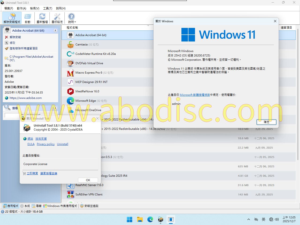 -=-=-=-=-=-=-=-=-=-=-=-=-=-=-=-=-=-=-=-=-=-=-=-=-=-=-=-=-=-=-=-=-=-=-=-= HoneRiSO Rip -=-=-=-=-=-=-=-=-=-=-=-=-=-=-=-=-=-=-=-=-=-=-=-=-=-=-=-=-=-=-=-=-=-=-=-= 軟體名稱: CrystalIdea Uninstall Tool 3.8.1 語系版本: 英文/繁體中文版 光碟片數: 單片裝 保護種類: 檔案破解 破解說明: 見最底下 系統支援: 適用 32 與 64 位元版的 Windows 7/8/8.1/10/11(原生 64 位元) 硬體需求: PC 軟體類型: 反安裝工具 更新日期: 2025.11.25 軟體發行: CrystalIdea Software(O.D) 官方網站: https://crystalidea.com/uninstall-tool 中文網站: 無 軟體簡介: (以官方網站為準) -=-=-=-=-=-=-=-=-=-=-=-=-=-=-=-=-=-=-=-=-=-=-=-=-=-=-=-=-=-=-=-=-=-=-=-= 在 Windows 系統的使用過程中,許多使用者常會遇到軟體移除不乾淨、安裝殘留 檔案堆積,甚至某些惡意程式或損壞軟體無法正常刪除的情況。Uninstall Tool正 是為了解決這些問題而設計的專業級移除利器。它以「快速、徹底、安全」著稱, 是許多資深電腦玩家與 IT 管理員公認的最佳 Windows 原生移除程式替代方案。 這款工具的核心競爭力在於其「移除精靈(Uninstall Wizard)」功能。一般的移除 過程通常只會執行軟體內建的移除腳本,往往會遺留大量的登入檔(Registry)項目 、空的資料夾以及各種暫存檔案。Uninstall Tool 在軟體原始移除程式執行完畢 後,會自動啟動深層掃瞄,將這些隱藏在系統深處的「數位垃圾」一掃而空,確保 系統始終保持純淨與高效。 主要功能特色: 安裝追蹤器(Install Tracker): 這是一項極具威力的功能。它能以即時監控的方式記錄新軟體安裝時對系統所做的 每一項改動。這意味著當你未來需要移除該軟體時,Uninstall Tool 能夠精確地 還原所有變更,達到真正的「100% 徹底移除」。 強制移除模式(Force Removal): 遇到損壞的軟體或是無法透過正常途逕移除的程式時,強制移除功能可以繞過標準 移除程式,直接定位該軟體的檔案與登入檔項並將其刪除。 啟動項管理(Startup Manager): 除了移除功能,它還內建了強大的開機啟動項管理工具。使用者可以輕鬆啟用、停 用或完全刪除隨系統開機啟動的程式,有效縮短開機時間並釋放系統資源。 直覺式且高效的介面: 新版本持續最佳化了使用者體驗。其介面簡潔且支援繁體中文,並將應用程式區分 為「一般軟體」、「系統元件」與「隱藏程式」,讓管理變得條理分明。此外,它 的啟動速度極快,比 Windows 內建的「新增或移除程式」效能高出許多。 批次移除與搜尋: 支援快速搜尋功能,只需輸入關鍵字即可找到目標。同時也支援批次操作,讓多個 軟體的清理工作一氣呵成。 -=-=-=-=-=-=-=-=-=-=-=-=-=-=-=-=-=-=-=-=-=-=-=-=-=-=-=-=-=-=-=-=-=-=-=-= 站長安裝測試環境與安裝說明: -=-=-=-=-=-=-=-=-=-=-=-=-=-=-=-=-=-=-=-=-=-=-=-=-=-=-=-=-=-=-=-=-=-=-=-= ‧測試環境 Windows 11.25H2 64位元繁體中文企業版、AMD CPU、4 GB 記憶體。 ‧見光碟 "安裝說明.txt" 中文說明-=-=-=-=-=-=-=-=-=-=-=-=-=-=-=-=-=-=-=-=-=-=-=-=-=-=-=-=-=-=-=-=-=-=-=-=