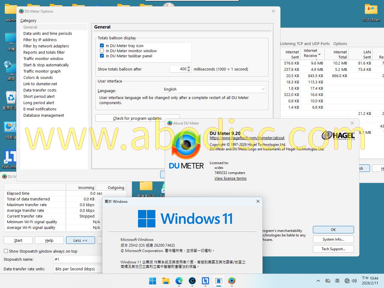 -=-=-=-=-=-=-=-=-=-=-=-=-=-=-=-=-=-=-=-=-=-=-=-=-=-=-=-=-=-=-=-=-=-=-=-= HoneRiSO Rip -=-=-=-=-=-=-=-=-=-=-=-=-=-=-=-=-=-=-=-=-=-=-=-=-=-=-=-=-=-=-=-=-=-=-=-= 軟體名稱: DU Meter 9.20 語系版本: 英文版 光碟片數: 單片裝 保護種類: 檔案破解 破解說明: 見最底下 系統支援: 適用 32 與 64 位元版的 Windows 7/8/8.1/10/11 硬體需求: PC 軟體類型: 網路流量即時監看 更新日期: 2026.01.20 軟體發行: Hagel Technologies Ltd(O.D) 官方網站: https://www.hageltech.com/dumeter/about 中文網站: https://www.softking.com.tw/13700/DU%20Meter%207.09.html 軟體簡介: (以官方網站為準) -=-=-=-=-=-=-=-=-=-=-=-=-=-=-=-=-=-=-=-=-=-=-=-=-=-=-=-=-=-=-=-=-=-=-=-= DU Meter:精準掌握網路脈動的資深守門員 在網路服務幾乎等同於生活必需品的今天,我們每天都在進行大量的資料交換。不 論是追劇、線上會議還是大型遊戲下載,網路的速度與穩定度直接影響了使用體驗 。DU Meter 是一套在軟體界屹立不搖、口碑極佳的網路流量監測工具。它以輕量 、精準且不佔系統資源著稱,是許多電腦玩家與 IT 人員必備的系統小工具。 DU Meter 的核心強項與實用特色: 即時流量視覺化(Real-time Monitoring): DU Meter 最直覺的功能就是它那精美的小視窗。它能以曲線圖或數位即時顯示目 前的上傳 (Upload) 與下載 (Download) 速度。您可以將它設定為懸浮視窗,或是 直接整合在 Windows 的工作列 (Taskbar) 中。這讓使用者在處理文書工作或玩遊 戲時,眼角餘光就能掃到網路是否異常,不需要特地開啟工作管理員。 詳盡的流量統計報表: 除了即時監看,DU Meter 具備強大的資料庫功能。它會詳實記錄每天、每週、每 月的總流量使用狀況。對於使用行動資料分享或是租屋處有網路流量限制的使用者 來說,這項功能非常關鍵。您可以清楚看到這一個月來到底耗費了多少 GB 的頻寬 ,並產出專業的報表,作為評估網路資費方案的參考。 自定警示功能(Alerts n Notifications): 您可以設定特定的流量閾值。例如,當當月流量達到 90% 時,或者當網路速度突 然降到某個數值以下時,DU Meter 會主動跳出通知提醒您。甚至可以設定在達到 流量上限時,自動中斷網路連接,防止因為超量而產生額外的電信費用。 抓出背景「偷吃」頻寬的程式: 有時候明明沒在下載檔案,網路卻慢得要命?透過 DU Meter,您可以立刻判斷是 否有潛藏的軟體在背景偷偷進行更新或上傳。它能區分網路卡之間的流量(如Wi-Fi 與區域網路),幫助您快速排除網路卡頓的元兇。 極低系統負載與高度自定: 身為一套老牌軟體,DU Meter 的最佳化(Optimization) 做得非常好。它運作時幾 乎不耗費 CPU 與記憶體資源,即便在規格較舊的電腦上也能順暢執行。此外,它 的介面色彩、透明度與顯示模式都可以隨使用者喜好調整,確保它能完美融入您的 桌面美學。 介紹 -=-=-=-=-=-=-=-=-=-=-=-=-=-=-=-=-=-=-=-=-=-=-=-=-=-=-=-=-=-=-=-=-=-=-=-= 站長安裝測試環境與安裝說明: -=-=-=-=-=-=-=-=-=-=-=-=-=-=-=-=-=-=-=-=-=-=-=-=-=-=-=-=-=-=-=-=-=-=-=-= ‧測試環境 Windows 11.25H2 64位元繁體中文企業版、AMD CPU、4 GB 記憶體。 ‧見光碟 "安裝說明.txt" 中文說明-=-=-=-=-=-=-=-=-=-=-=-=-=-=-=-=-=-=-=-=-=-=-=-=-=-=-=-=-=-=-=-=-=-=-=-=