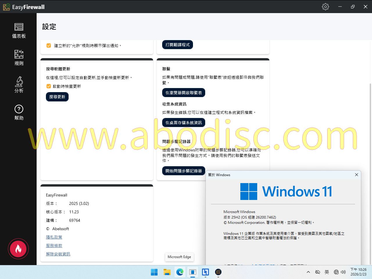 -=-=-=-=-=-=-=-=-=-=-=-=-=-=-=-=-=-=-=-=-=-=-=-=-=-=-=-=-=-=-=-=-=-=-=-= HoneRiSO Rip -=-=-=-=-=-=-=-=-=-=-=-=-=-=-=-=-=-=-=-=-=-=-=-=-=-=-=-=-=-=-=-=-=-=-=-= 軟體名稱: EasyFirewall 2025 3.02 語系版本: 英文/繁體中文版 光碟片數: 單片裝 保護種類: 破解檔 破解說明: 見最底下 系統支援: 適用 64 位元版的 Windows 10/11 硬體需求: PC 軟體類型: 網路防火牆 更新日期: 2026.02.01 軟體發行: Abelssoft(O.D) 官方網站: https://www.abelssoft.de/en/windows/security-privacy/easyfirewall 中文網站: https://www.ashampoo.com/zh-tw/abelssoft-easyfirewall-2024 軟體簡介: (以官方網站為準) -=-=-=-=-=-=-=-=-=-=-=-=-=-=-=-=-=-=-=-=-=-=-=-=-=-=-=-=-=-=-=-=-=-=-=-= EasyFirewall 本身並非防火牆軟體,它是利用 Windows 作業系統內建的防火牆來 建立網路流量進、出的工具,網路攻擊呈上升趨勢: 使用 EasyFirewall 擴展您的 防護牆 - 充分利用 Windows 內建防火牆 - 更易於理解、更易於使用,因此更安全 - 為您的線上應用程式新增新的安全規則 - 透過即時保護提醒您注意異常情況 *使用 EasyFirewall,您的 Windows 防火牆將成為終極安全軟體 幾乎每台 Windows PC 上都預裝了標準防火牆,可提供可接受的基本保護以抵禦外 部入侵者。為什麼許多人仍然使用昂貴的外部防火牆來保護自己? 這是由於防火牆的非透明性質。它根據預定義的規則幾乎無形地工作,作為使用者 ,您不知道哪些應用程式正在與 Internet 通訊。這種無知可能是致命的,因為在 Windows 防火牆上進行設定本身是難以理解的,而且極其複雜。 *完善您的防火牆,最佳化設定和可用性,從而為您提供最高級別的安全性。 在防火牆精靈的協助下設定規則,並自行決定允許哪些應用程式與 Internet 通訊 ,無論是傳入還是傳出,以及根本不允許連接哪些應用程式。即時保護讓您立即瞭 解情況,並在應用程式授予自己未來 internet 連線權限後立即通知您。 易於使用 有了 EasyFirewall,操作複雜的 Windows 防火牆終於變成了兒戲。 設定您自己的安全規則 借助規則,您可以設定允許哪些應用程式與 internet 通訊,哪些不允許。 EasyFirewall 精靈 防火牆精靈可協助您新增規則,並為您提供有關技術術語背後隱藏內容的提示。 即時防護 透過即時保護,一旦應用程式允許自己將資料傳送到網際網路,會立即收到通知。 恐慌模式 只需按一下,即可啟用緊急模式並立即中斷所有網路連線。 選取網路安全 使用不同的模式在最大安全性或舒適性之間切換 - 取決於您是否在公共 WLAN 上。 -=-=-=-=-=-=-=-=-=-=-=-=-=-=-=-=-=-=-=-=-=-=-=-=-=-=-=-=-=-=-=-=-=-=-=-= 站長安裝測試環境與安裝說明: -=-=-=-=-=-=-=-=-=-=-=-=-=-=-=-=-=-=-=-=-=-=-=-=-=-=-=-=-=-=-=-=-=-=-=-= ‧測試環境 Windows 11.25H2 64位元繁體中文企業版、AMD CPU、4 GB 記憶體。 ‧見光碟 "安裝說明.txt" 中文說明-=-=-=-=-=-=-=-=-=-=-=-=-=-=-=-=-=-=-=-=-=-=-=-=-=-=-=-=-=-=-=-=-=-=-=-=